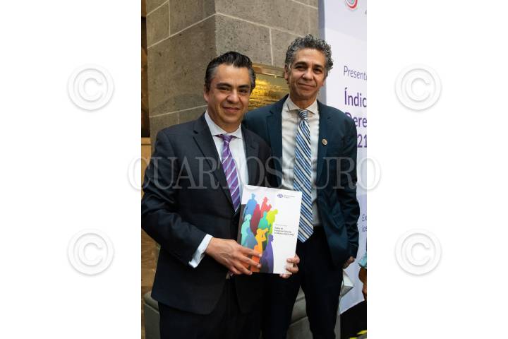 Alejandro Ponce y Alejandro González Arreola, integrantes del World Justice Project (WJP), durante la presentación del Índice de Estado de Derechos en México 2021-2022.