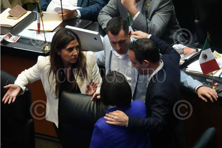 CIUDAD DE MÉXICO, 08ABRIL2025.- Los senadores Patricia Murguía, coordinadora del PAN, conversó con Clemente Castañeda, coordinador de Movimiento Ciudadano durante la Sesión Ordinaria en el Senado de la República. FOTO: GRACIELA LÓPEZ/CUARTOSCURO.COM