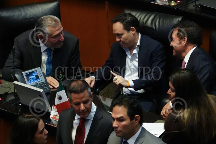 CIUDAD DE MÉXICO, 18SEPTIEMBRE2024.- Los senadores Adán Augusto, Clemente Castañeda e Ignacio Mier conversaron durante la Sesión Ordinaria en la que se discutió el decreto por el que se Reforma la fracción VII del artículo 74 de la Ley Federal del Trabajo. FOTO: GRACIELA LÓPEZ /CUARTOSCURO.COM