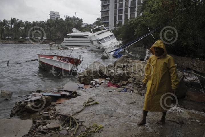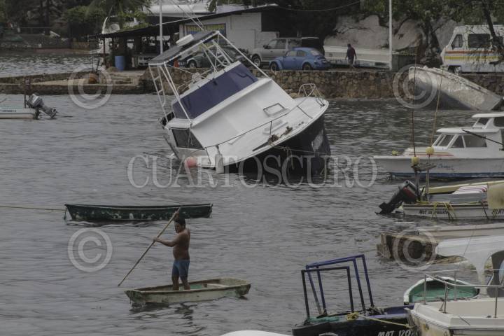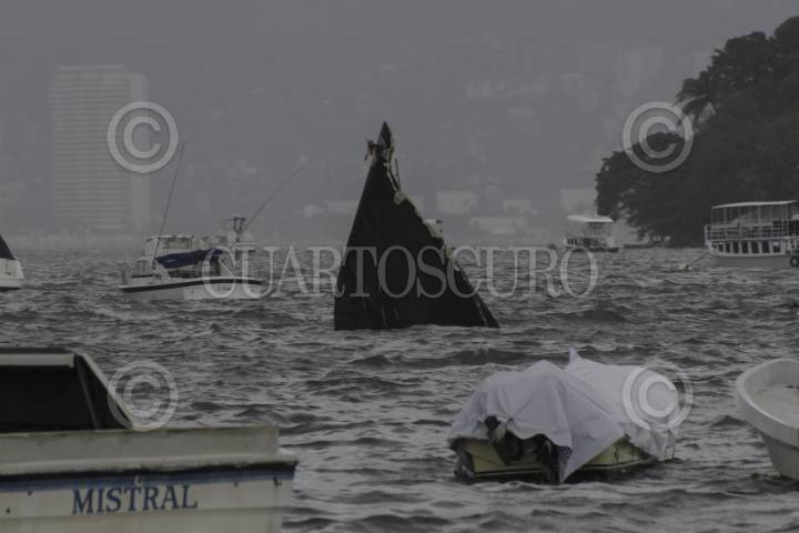 ACAPULCO, GUERRERO, 14JUNIO2015.- En la playa de manzanillo quedaron varados varias embarcaciones pertenecientes al club de yates, mientras que otras se hundieron en el mar. FOTO: BERNANDINO HERNÁNDEZ /CUARTOSCURO.COM