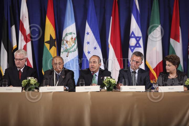 NUEVA YORK, ESTADOS UNIDOS, 20SEPTIEMBRE2011.- Felipe Calderón presidente de México, durante el dialogo de líderes de cambio climático en la sesión inaugural de la Clinton Glonal Initiative 2001. FOTO: ALFREDO GUERRERO/CUARTOSCURO.COM