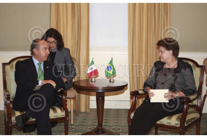 NUEVA YORK, ESTADOS UNIDOS, 20SEPTIEMBRE2011.- Felipe Calderón presidente de México, durante la reunión bilateral con la presidenta de Brasil Dilma Rousseff. FOTO: ARIEL GUTIERREZ/CUARTOSCURO.COM