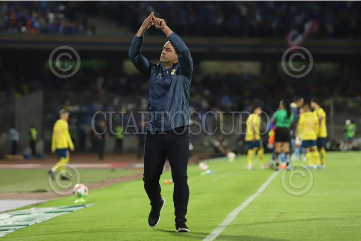 CIUDAD DE MÉXICO, 15MAYO2025.- André Jardine salió expulsado del partido luego de protestar las decisiones arbitrales, al retirarse del encuentro le señaló a la afición de Cruz Azul los tres campeonatos que ha ganado el América . FOTO: DANIEL AUGUSTO/CUARTOSCURO.COM