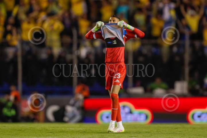 CIUDAD DE MÉXICO, 18MAYO2025.- Kevin Mier, arquero de la Máquina, se lamenta su error en el encuentro que a la postre les costo la eliminación. El Cruz Azul cayó 2-1 ante el América, en el partido se ida de la semifinal de la Liga MX, quedando 2-2 en el global, por que los de Coapa avanzan a la final por tener mejor posición en la tabla general. Las anotaciones fueron por parte de las Águilas de Henry Martín y Cristian Alexis Borja, mientras que de los celestes se hizo presente Lorenzo Faravelli. Partido disputado en el Estadio Ciudad de los Deportes. FOTO: CUARTOSCURO.COM