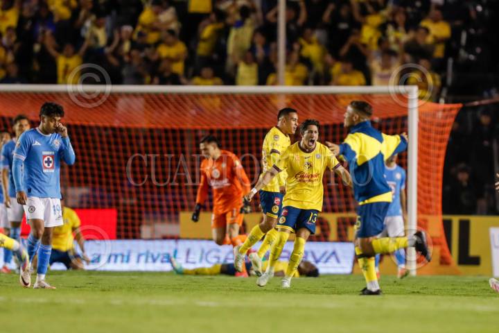 CIUDAD DE MÉXICO, 18MAYO2025.- El Cruz Azul cayó 2-1 ante el América, en el partido se ida de la semifinal de la Liga MX, quedando 2-2 en el global, por que los de Coapa avanzan a la final por tener mejor posición en la tabla general. Las anotaciones fueron por parte de las Águilas de Henry Martín y Cristian Alexis Borja, mientras que de los celestes se hizo presente Lorenzo Faravelli. Partido disputado en el Estadio Ciudad de los Deportes. FOTO: CUARTOSCURO.COM