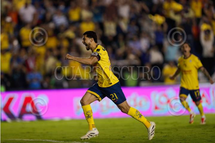 CIUDAD DE MÉXICO, 18MAYO2025.- Henry Martín de las Águilas celebra su anotación. El Cruz Azul cayó 2-1 ante el América, en el partido se ida de la semifinal de la Liga MX, quedando 2-2 en el global, por que los de Coapa avanzan a la final por tener mejor posición en la tabla general. Las anotaciones fueron por parte de las Águilas de Henry Martín y Cristian Alexis Borja, mientras que de los celestes se hizo presente Lorenzo Faravelli. Partido disputado en el Estadio Ciudad de los Deportes. FOTO: CUARTOSCURO.COM