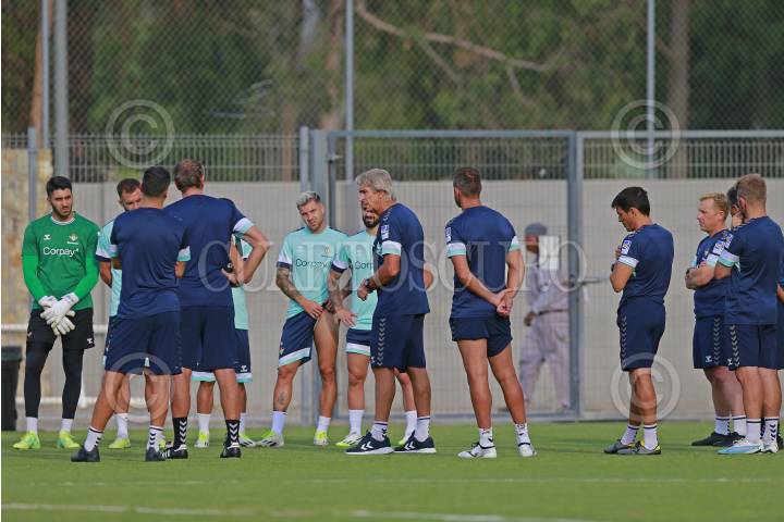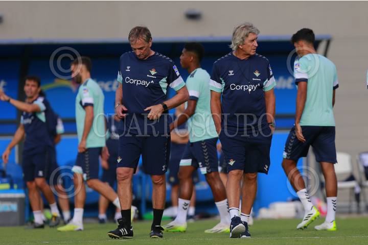 El cuerpo técnico del equipo español Real Betis participan en una sesión de entrenamiento, hoy previo a su partido ante el Sevilla como parte del tour de La Liga Española a disputarse en la ciudad de Guadalajara, Jalisco.