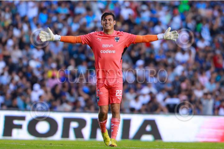 QUERÉTARO, QUERÉTARO, 16FEBRERO2025.- Luis Cárdenas, Portero del Monterrey en festejo durante el partido de la jornada 7 del Torneo Clausura 2025 de la Liga BBVA MX en el Estadio Corregidora. Los Gallos Blancos cayeron 4-2 ante los regios. FOTO: CÉSAR GÓMEZ/CUARTOSCURO.COM