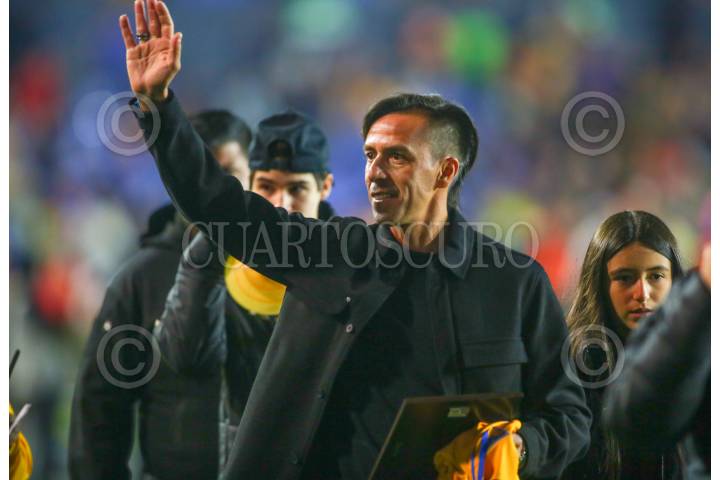 SAN NICOLÁS DE LOS GARZA, NUEVO LEÓN, 28ENERO2025.- El ex mediocampista de Tigres, Lucas Lobos, fue incluido en el “anillo de leyendas” del Club Tigres, donde los jugadores más destacados son reconocidos y le fue otorgado preivio al partido de Tigres vs Club Tijuana. FOTO: GABRIELA PÉREZ MONTIEL / CUARTOSCURO.COM
