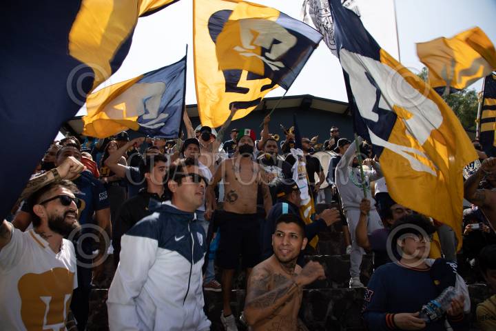 Un grupo de animación acudió a las instalaciones de Cantera del Club Universidad Nacional para dar la bienvenida al nuevo refuerzo de Pumas, Dani Alves.