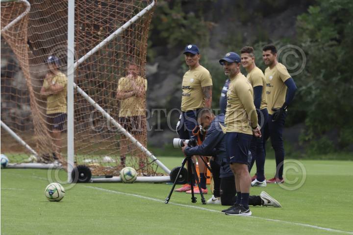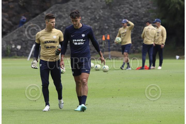 Carlos Sosa y Juan Dinenno durante el entrenamiento de Pumas, Club Universidad Nacional en las instalaciones de La Cantera.