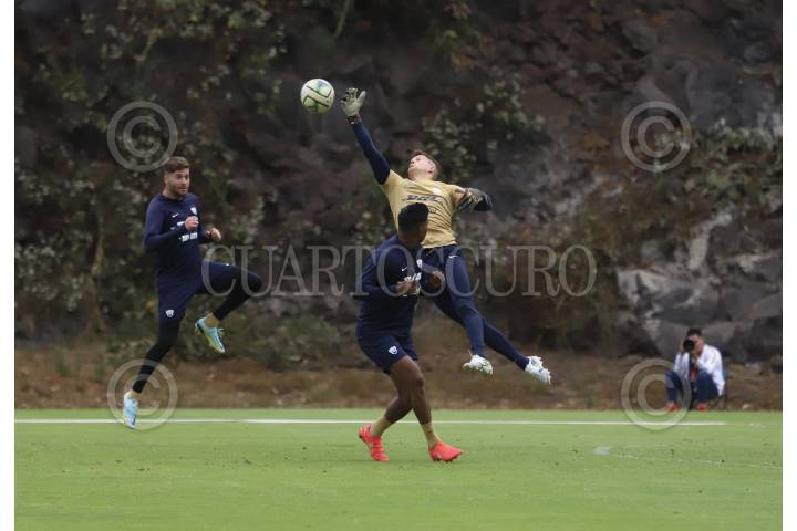 El portero Carlos Sosa durante el entrenamiento de Pumas, Club Universidad Nacional en las instalaciones de La Cantera.