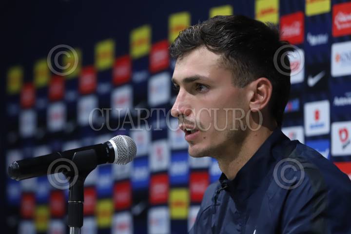 Juan Dinenno durante una conferencia de prensa al término del entrenamiento de Pumas, Club Universidad Nacional en las instalaciones de La Cantera.