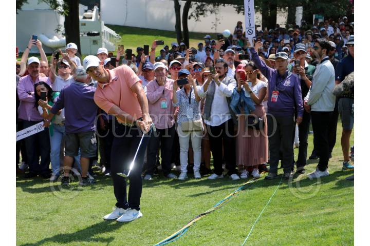 CIUDAD DE MÉXICO, 02MARZO2017.- Jay Monahan, comisionado del PGA Tour; Ricardo Salinas Pliego, director general de Tv Azteca; Benjamin Salinas Sada, director ejecutivo de Tv Azteca, y Esteban Toledo, jugador mexicano de Golf, encabezaron la inauguración del Campeonato Mundial de Golf en el Club de Golf Chapultepec. En la imagen Esteban Toledo realiza el primer golpe del torneo. FOTO: GALO CAÑAS /CUARTOSCURO.COM