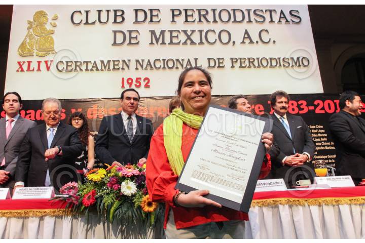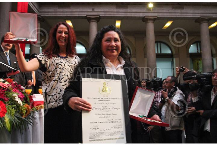 CIUDAD DE MÉXICO, 16MARZO2016.- La reportera Carmen García Bermejo, una de las ganadoras del Premio Nacional de Periodismo. Olegario Vázquez Raña, presidente del Grupo Ángeles, y Moris Sallloum, presidente del Club de Periodistas, encabezaron la entrega del Premio Nacional e Internacional de Periodismo en el recinto localizado en el Centro Histórico. En el discurso inaugural mencionaron la fuerte crisis de desaparición forzada que padece el país. FOTO: MARÍA JOSÉ MARTÍNEZ /CUARTOSCURO.COM