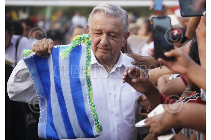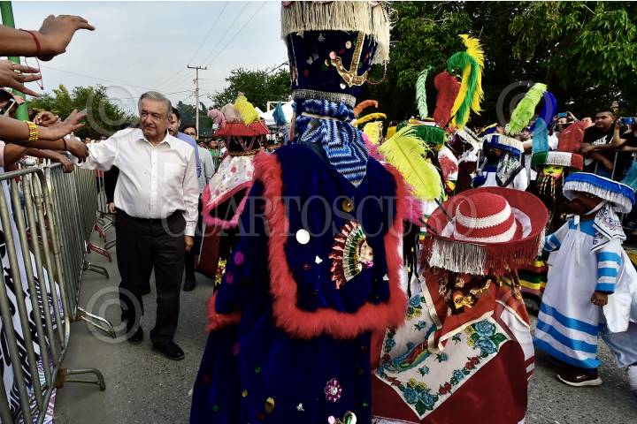 COATETELCO, MORELOS, 22NOVIEMBRE2019.- El presidente de la República, Andrés Manuel López Obrador, durante el “Diálogo con el Pueblo Náhuatl” realizado esta tarde en este municipio indígena de reciente creación. El mandatario federal respaldó al gobernador, Cuauhtémoc Blanco con el siguiente mensaje: “Llevamos muy buena relación con el gobernador, él no está solo, tiene el respaldo del gobierno federal, del presidente, digo esto porque hay veces que son muy abusivos, ventajosos”. Opositores a las concesiones mineras en el estado protestaron fuera del evento, así como familiares de reos del penal de Atlacholoaya, quienes exigen poder comunicarse con sus familiares. FOTO: MARGARITO PÉREZ RETANA /CUARTOSCURO.COM