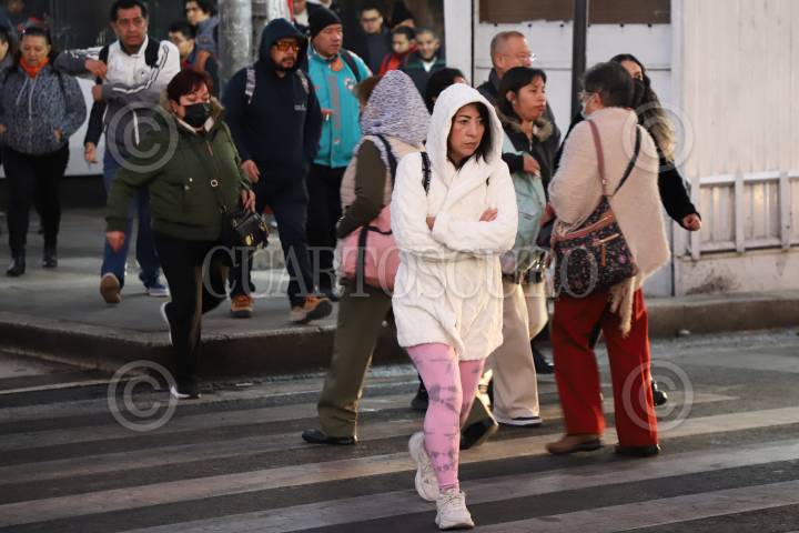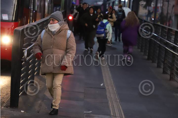CIUDAD DE MÉXICO, 09ENERO2025.- Decenas de personas se protegen del frío con chamarras y abrigos mientras caminan a sus trabajos. FOTO: DANIEL AUGUSTO/ CUARTOSCURO.COM