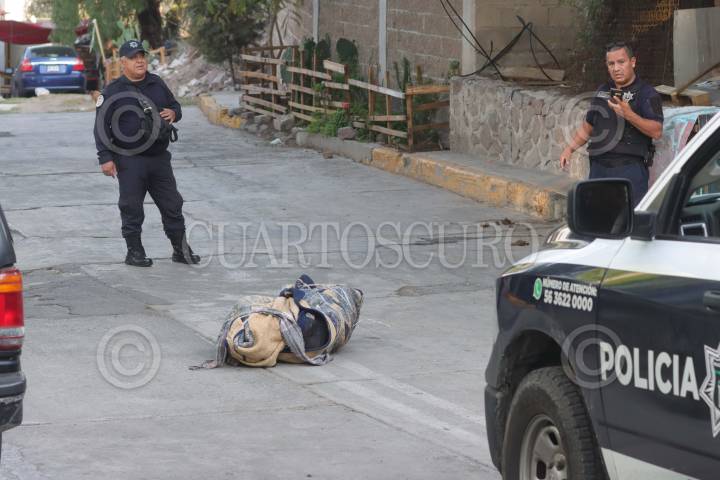 Vecinos de la avenida Francisco I Madero y Calle de Palma dieron aviso del cuerpo de dos personas que se encontraban entre cobijas, a los servicios de emergencia y autoridades correspondientes.