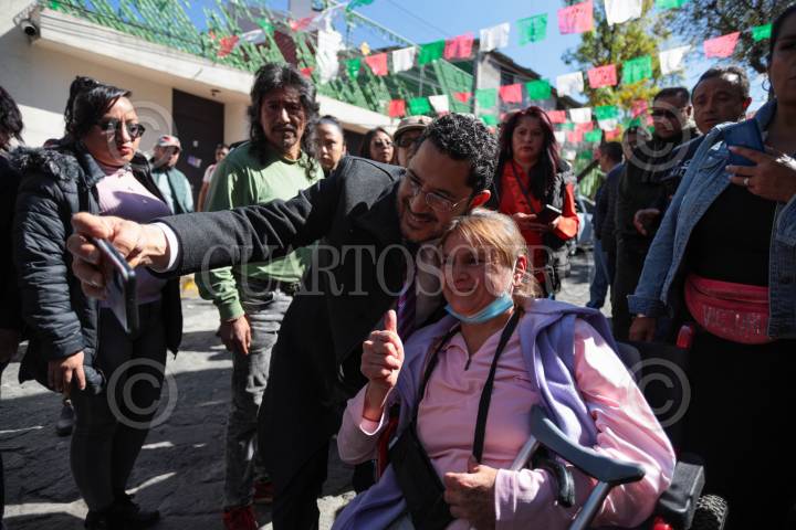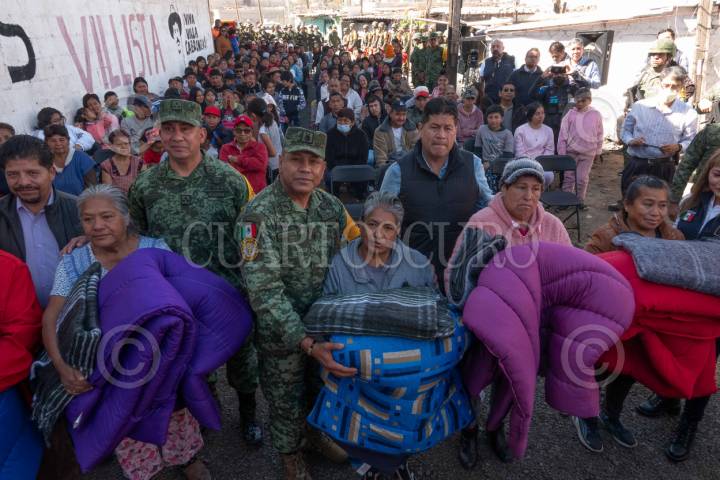 CIUDAD DE MÉXICO, 28DICIEMBRE2023.- Martí Batres, Jefe de Gobierno, encabezó la entrega de cobijas en colonias de la Magdalena Contreras, alcaldía que se caracteriza por registrar las más bajas temperaturas de la ciudad, ahí también se entregó comida caliente. FOTO: GOBIERNO DE LA CIUDAD DE MÉXICO/CUARTOSCURO.COM
