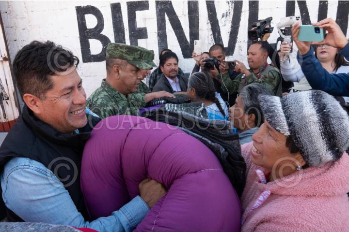 CIUDAD DE MÉXICO, 01DICIEMBRE2024.- Clara Brugada, jefa de Gobierno de la capital, entrega las primeras cobijas a habitantes de zonas altas de Iztapalapa, como parte del programa "La Ciudad te Cuida y en Invierno te Cobija". FOTO: DANIEL AUGUSTO/ CUARTOSCURO.COM