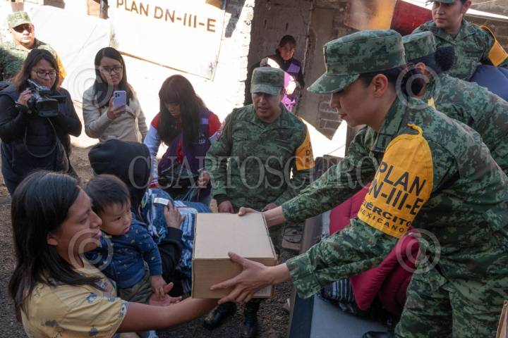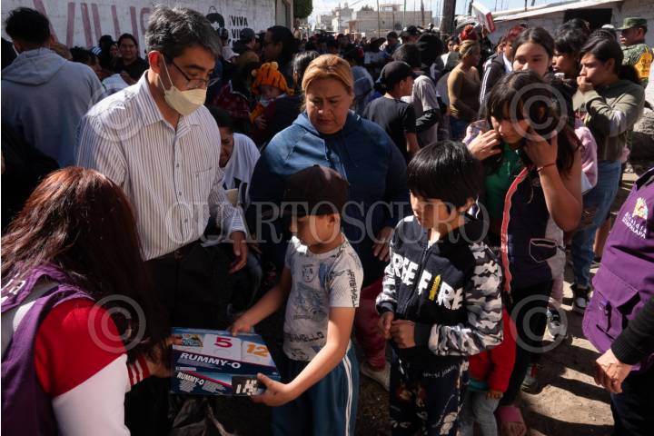 CIUDAD DE MÉXICO, 08ENERO2024.- Habitantes villistas del Predio Centauro del Norte recibieron cobijas, colchonetas, juguetes y cajas con despensas y zapatos por parte de José Antonio Jiménez Islas, encargado del despacho de la alcaldía Iztapalapa, autoridades de la Secretaria de Seguridad Ciudadana, SEDENA y Guardia Nacional. El acto se realizó en la colonia El Triángulo, alcaldía Iztapalapa. FOTO: GRACIELA LÓPEZ /CUARTOSCURO.COM