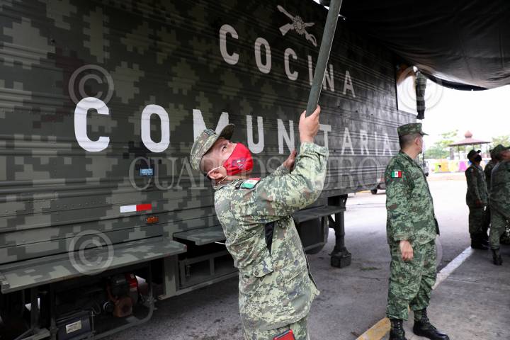 Como parte del plan DN-III, el ejército instaló cocinas comunitarias para apoyar a los municipios del estado de Yucatán, afectados por la tormenta "Cristóbal".