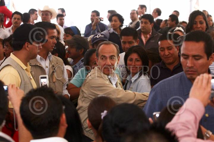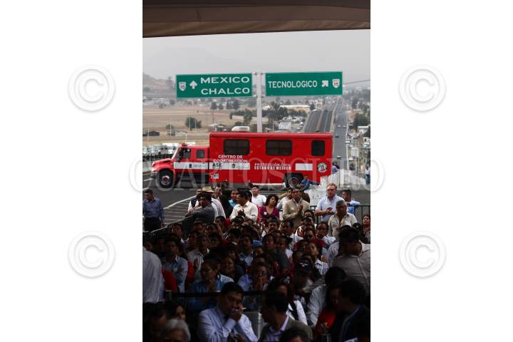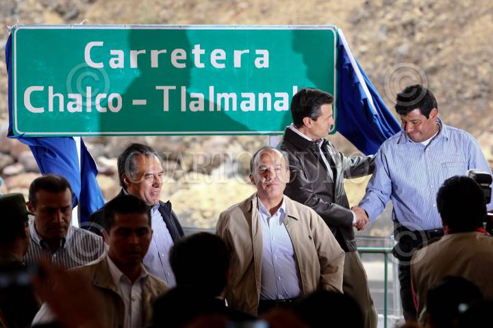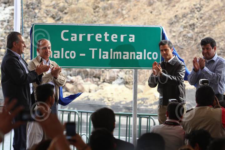 CHALCO, EDO. DE MÉX. 21ENERO2009.- Felipe Calderón Hinojosa, Presidente de México, acompañado de Enrique Peña Nieto, Gobernador del Estado de México y de Luis Téllez Kuenzler, Secretario de Transportes y Comunicaciones (SCT), realizaron la inauguración el Entronque Chalco 1, la cual beneficiara las comunidades de Chalco, Cocotitlán, Tlalmanalco, Ozumba, Amecameca y Tepetlixpa. FOTO: GUILLERMO PEREA/CUARTOSCURO.COM