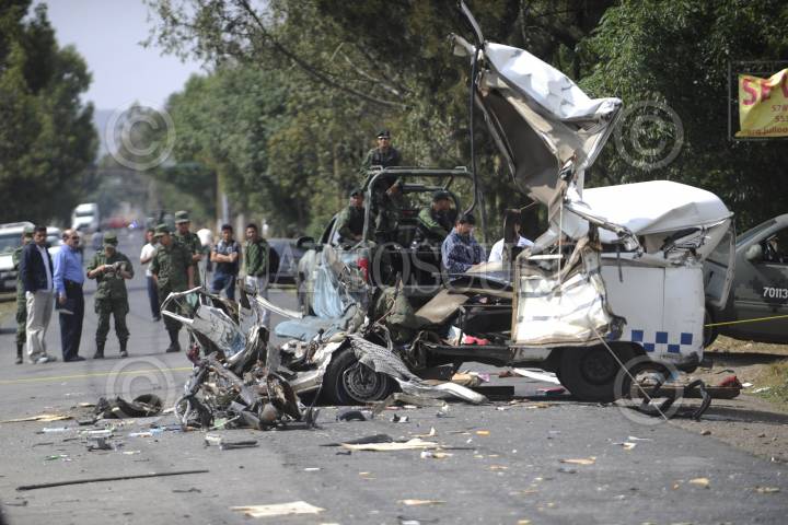 TEMAMATLA, ESTADO DE MÉXICO, 31MARZO2012.- Cuatro militares pierden la vida luego de chocar en la camioneta en que viajaban contra una combi, esto sobre la carretera Cocotitlan-Temamatla, municipio de Cocotitlan. FOTO: LUIS CARBAYO /CUARTOSCURO.COM