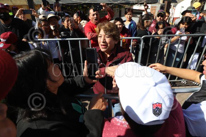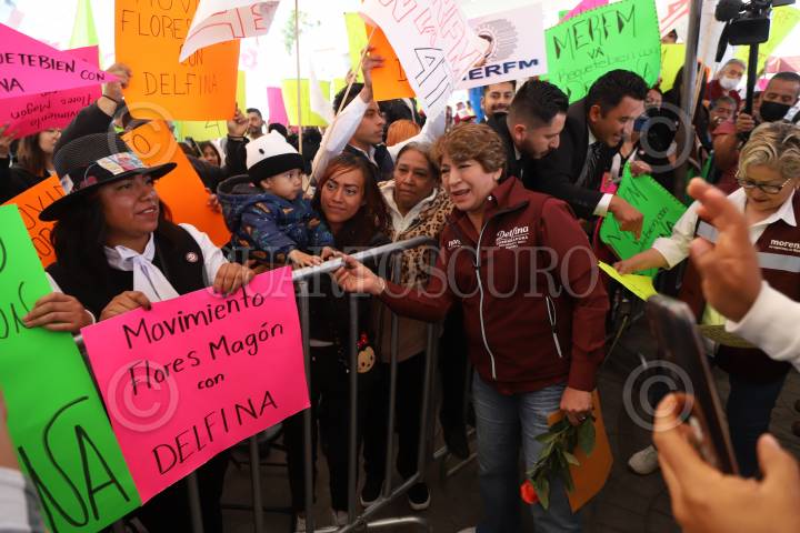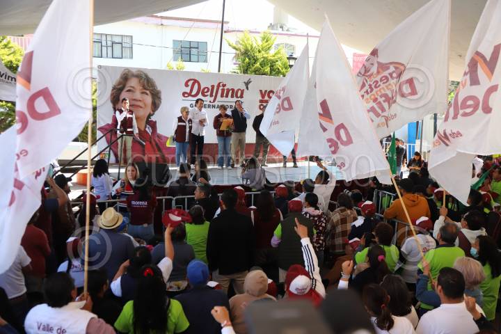 Delfina Gómez, candidata de Morena a la Gobernatura del Estado de México acudió al municipio de Cocotitlán en acto de campaña rumbo al 4 de junio. FOTO: EDGAR NEGRETE LIRA/CUARTOSCURO.COM