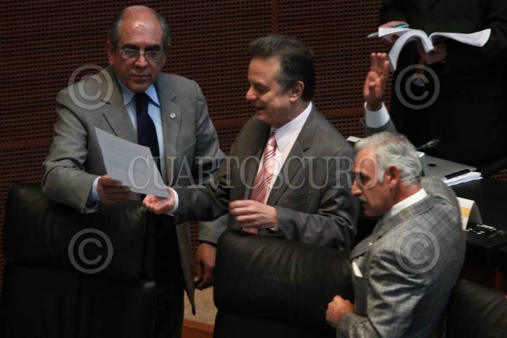 MÉXICO, D.F., 27ABRIL2011.- El senador del PRI, Pedro Joaquin Codwell conversa con el senador del PAN, Alejandro Zapata durante la sesión ordinaria del Senado de la República en donde se aprobó por lo general la Reforma Política. FOTO: RODOLFO ANGULO/CUARTOSCURO.COM