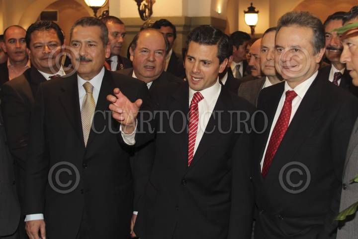 MÉXICO, D.F., 13DICIEMBRE2011.- Manlio Fabio Beltrones, Enrique Peña Nieto, pre-candidato a la presidencia de la república y Pedro Joaquín Coldwell, durante la reunión que sostuvieron senadores con Peña Nieto. FOTO: SAÚL LÓPÉZ/CUARTOSCURO.COM