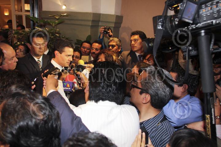 MÉXICO, D.F., 13DICIEMBRE2011.- Enrique Peña Nieto, pre-candidato a la presidencia de la república es entrevistado por reporteros a su salida con la reunión que sostuvo con senadores del PRI. FOTO: SAÚL LÓPÉZ/CUARTOSCURO.COM