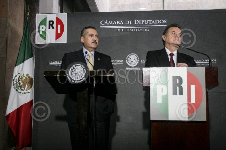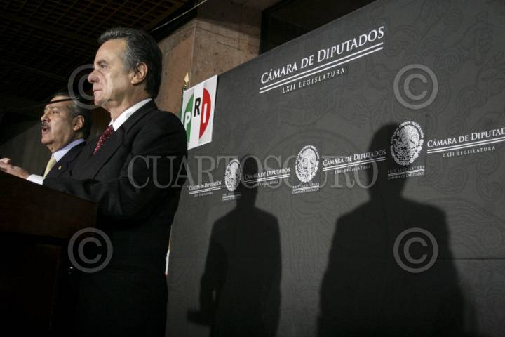 MÉXICO, D.F. 27NOVIEMBRE2012.- Diputados federales del PRI se reunieron con el presidente nacional de ese partido, para determinar sus posturas antes de la toma de protesta de Enrique Peña Nieto. Al final el coordinador de los diputados priistas Manlio Fabio Beltrones, y Pedro Joaquin Coldwelt ofrecieron conferencia de prensa. FOTO: JUAN PABLO ZAMORA /CUARTOSCURO.COM