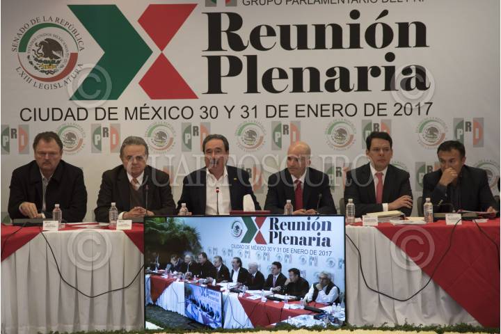 CIUDAD DE MÉXICO, 30ENERO2017.- Pedro Joaquín Codwell, Secretario de Energía, Emilio Gamboa Patrón Coordinador del grupo parlamentario del PRI, y José Antonio González Anaya, Director General de PEMEX, participaron en la X reunión plenaria del PRI. FOTO: TERCERO DÍAZ /CUARTOSCURO.COM