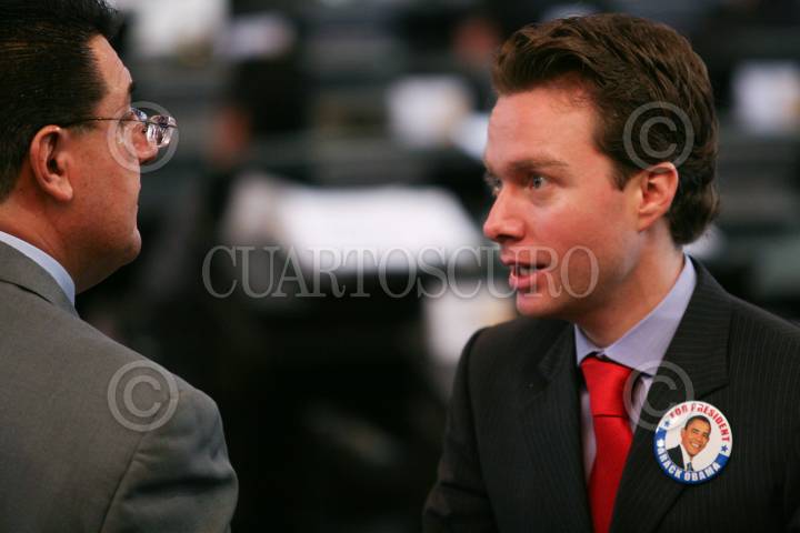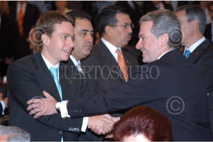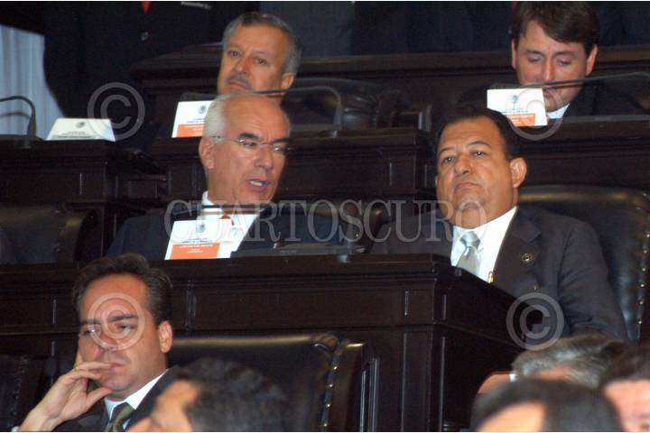 MÉXICO D.F. 29AGOSTO2006.- Los senadores, Manuel Velasco Coello y Santiago Creel Miranda, durante la primera sesión ordinaria de la LX Legislatura, en la camara de senadores. FOTO: Guillermo Perea/CUARTOSCURO.COM