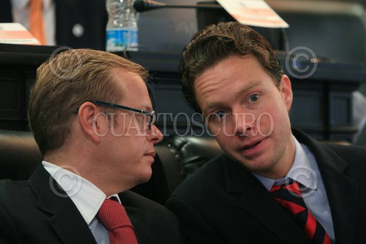 MÉXICO, D.F., 09FEBRERO2010.- Los senadores del Partido Verde Ecologistas, Arturo Escobar y Manuel Velásco Coello, durante la sesión en la Cámara Alta. FOTO: MOISÉS PABLO/CUARTOSCURO.COM
