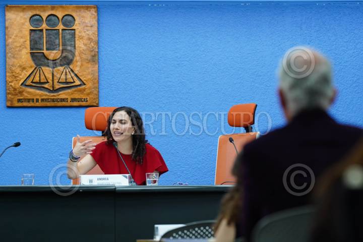 CIUDAD DE MÉXICO, 19ABRIL2025.- Mónica González Contró, Directora del Instituto de Investigaciones Jurídicas de la UNAM, durante la mesa inaugural del foro "Competencia en Transición: Análisis de la Iniciativa a la Ley de Transparencia" en la sede del instituto. FOTO: GALO CAÑAS/CUARTOSCURO.COM