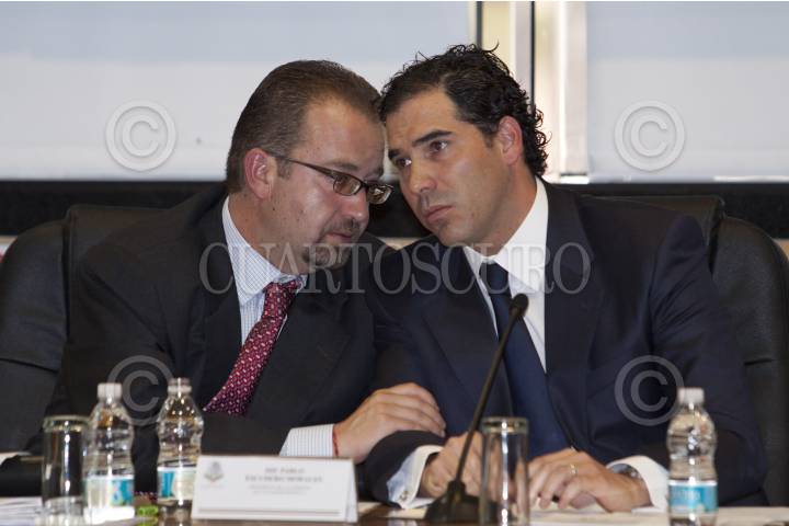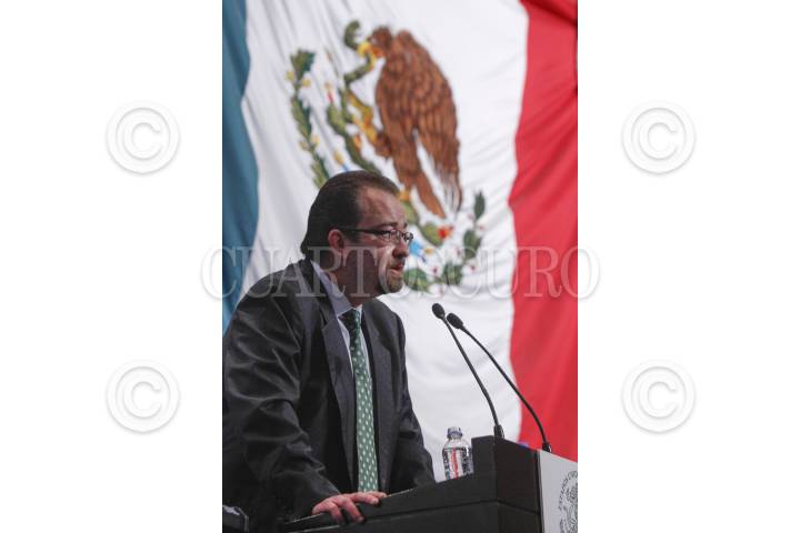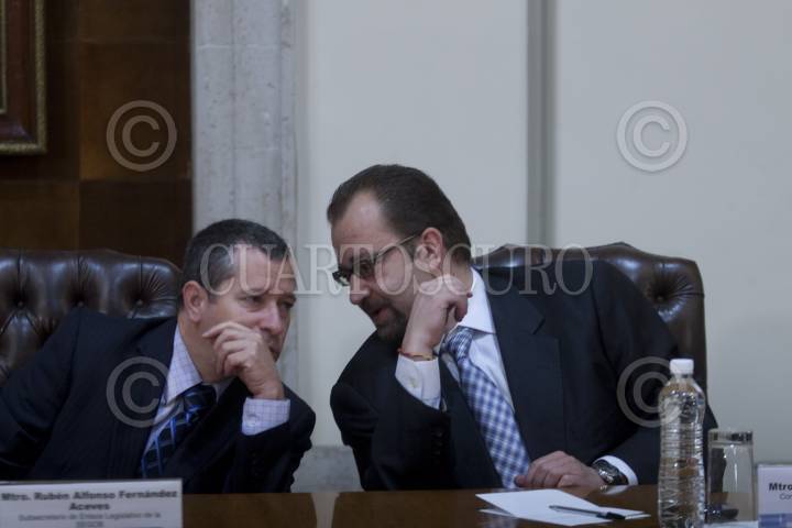 MÉXICO, D.F., 15UNIO2012.- El Subsecretario de Enlace Legislativo, Rubén Alfonso Fernández Aceves y el Mtro Mony de Swan, Presidente de la Comisión Federal de Telecomunicaciones estuvieron presentes la mañana de hoy en el salón Juárez de la Secreatria de Gobernación para ser testigos del inicio del programa de destrucción de datos del programna RENAUT. FOTO: FRANCISCO RODRÍGUEZ /CUARTOSCURO.COM