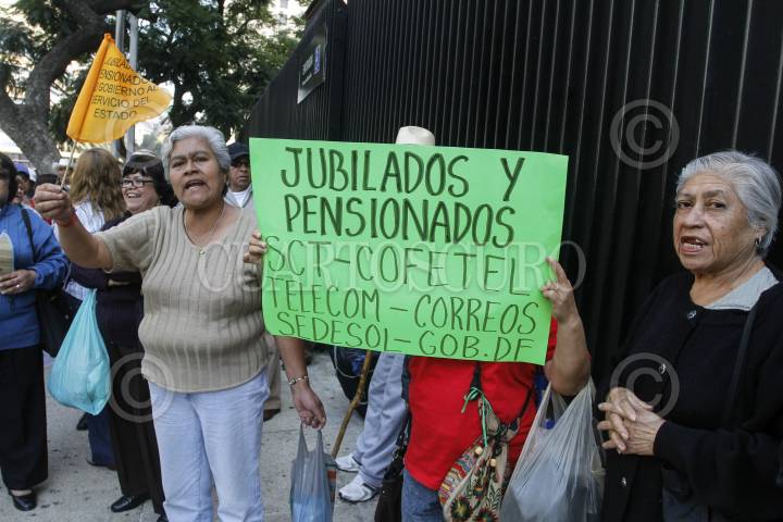 MÉXICO, D.F., 28NOVIEMBRE2012.- Miembros juvilados y pensionados de la SCT, COFETEL, TELECOM, SEDESOL, correos y Gobierno del DF se manifestaron frente al senado exigiendo pago justo de sus pensiones. FOTO: IVAN MÉNDEZ /CUARTOSCURO.COM