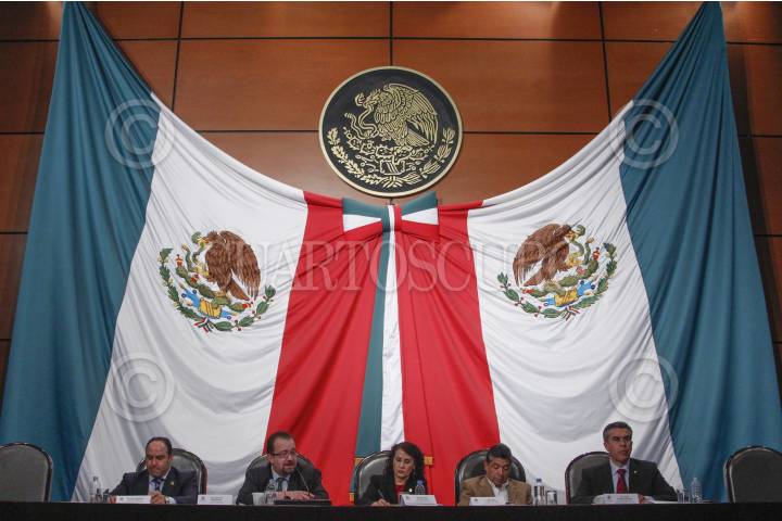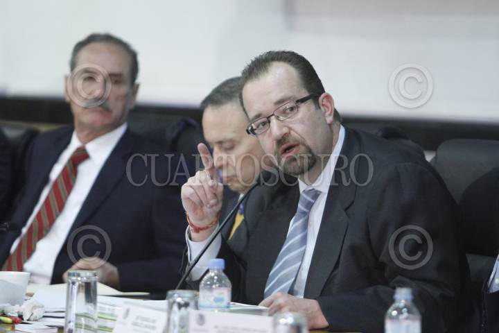 MÉXICO, D.F., 22FEBRERO2012.- El diputado Angel Patricio Chirinos, Mony Sacha de Swaan Addati, comisionado presidente de la Comisión Federal de Telecomunicaciones (COFETEL), el diputado Pablo Escudero, Agustín Guerrero durante la comparecencia del comisionado la cual fue cancelada por la ausencia de los otros 4 comisionados, que se realizó en la Cámara de Diputados. FOTO: RODOLFO ANGULO / CUARTOSCURO.COM