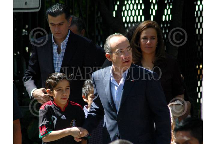 MÉXICO, D.F., 25ABRIL2010.- El presidente Felipe Calderón acompañado de su familia a su llegada al Desfile Infantil Niños por el Bicentenario que se realizo sobre el Paseo de la Reforma desde el Circuito Gandhi hasta la glorieta de Colon. FOTO: RODOLFO ANGULO/CUARTOSCURO.COM