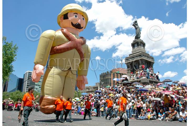 MÉXICO, D.F., 25ABRIL2010.- Diversos personajes de la historia de México desfilaron al lado de carros alegóricos y globos gigantes durante el Desfile Infantil Niños por el Bicentenario que se realizo sobre el Paseo de la Reforma desde el Circuito Gandhi hasta la glorieta de Colon. FOTO: RODOLFO ANGULO/CUARTOSCURO.COM
