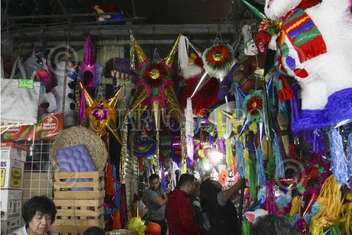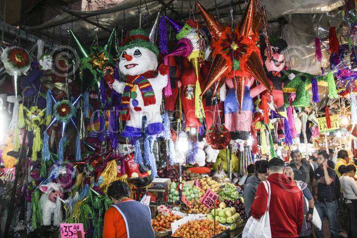 CIUDAD DE MÉXICO, 22DICIEMBRE2016.- Los comerciantes del Mercado de la Merced despachan la tradicionales piñatas que se utilizarán para esta época de posadas. Fruta, colación, cacahuates y variedad de dulces también están a la venta en la principal nave de uno de los mercados más tradicionales en la ciudad. FOTO: ANTONIO CRUZ /CUARTOSCURO.COM