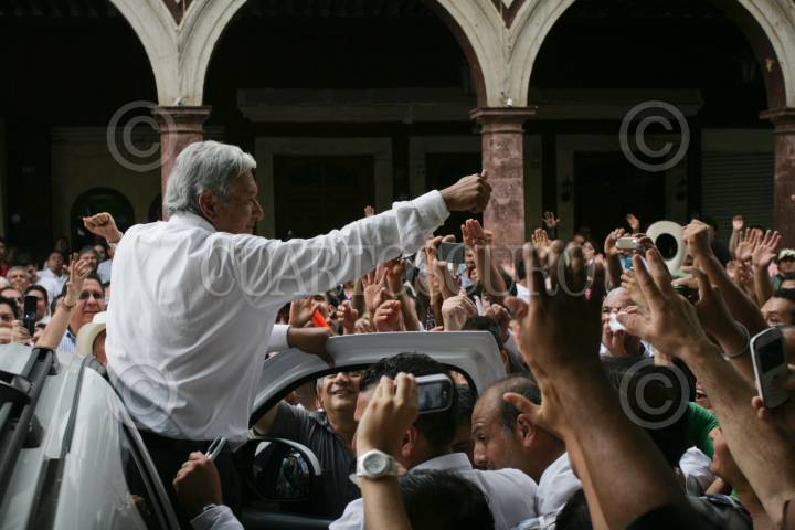 ZAMORA, MICHOACAN 01JUNIO2012.- Andrés Manuél López Obrador, candidato de la coalición Movimiento Progresista, en el ultimo punto de la gira por este Estado. FOTO: JUAN PABLO ZAMORA /CUARTOSCURO.COM