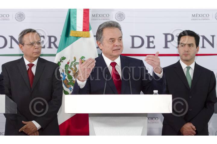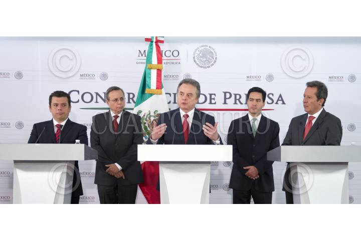 MÉXICO, D.F., 28AGOSTO2014.- Pedro Joaquín Coldwell, Secretario de Energía, presentó a los que serán los nuevos directores del Centro Nacional de Gas Natural (CENAGAS), David Madero Suárez y del Centro Nacional de Control de Energía (CENACE), Eduardo Meraz Ateca. En la conferencia de prensa estuvo presente Eduardo Sánchez, Vocero de Presidencia de la República. FOTO: CUARTOSCURO.COM