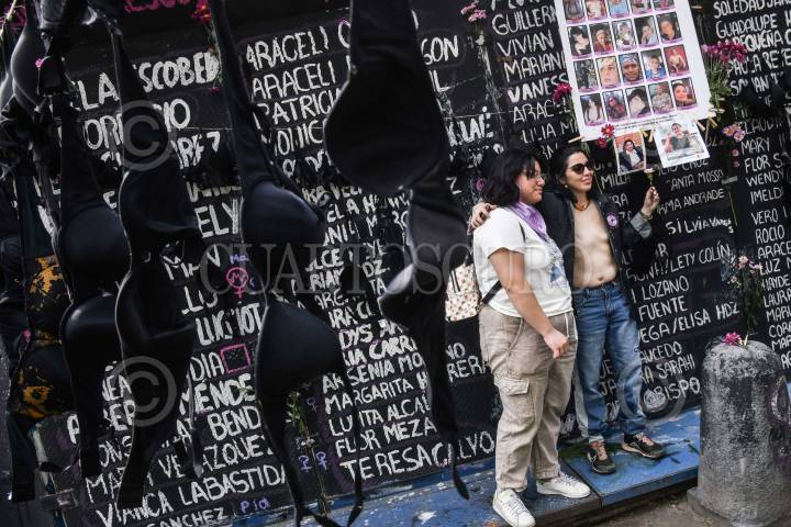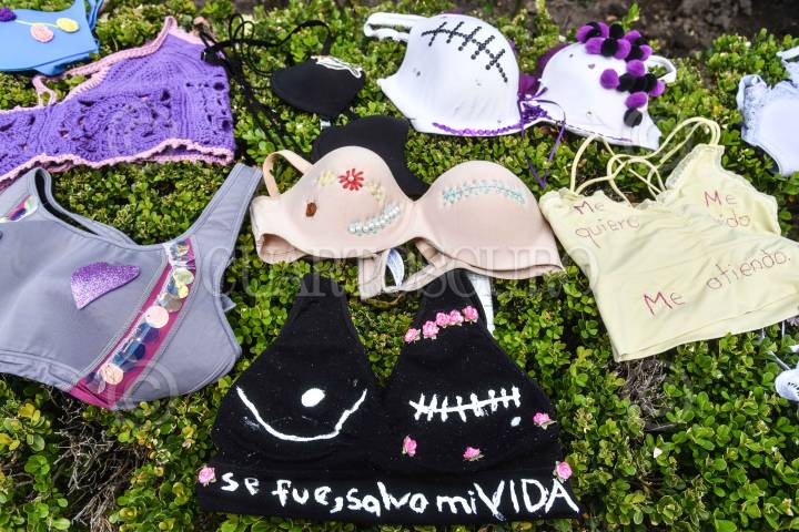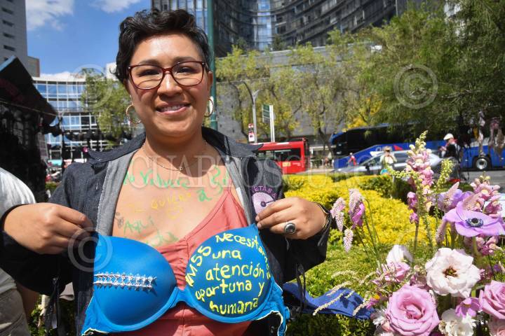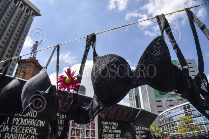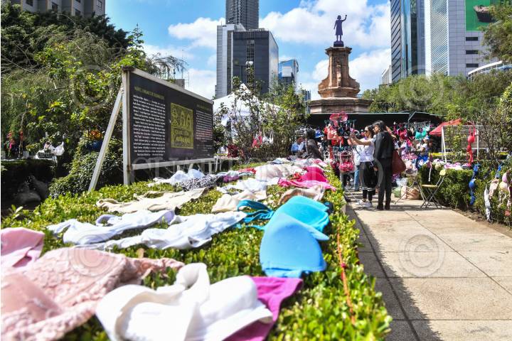 CIUDAD DE MÉXICO, 19OCTUBRE2024.- Mujeres del colectivo "Tetas y Rayas" realizaron una protesta en la "Glorieta de las mujeres que luchan" colocando miles de brasieres en sus inmediaciones. La acción se realizó para visibilizar a las mujeres que han fallecido o padecen cáncer de mama. El 19 de octubre se conmemora el Día Mundial de la Lucha contra el Cáncer de Mama FOTO: MARIO JASSO/CUARTOSCURO.COM