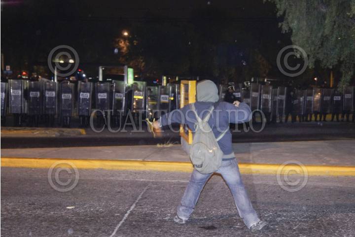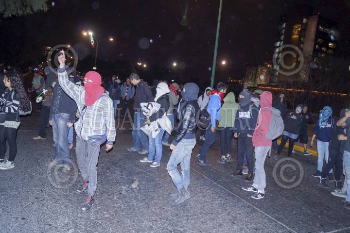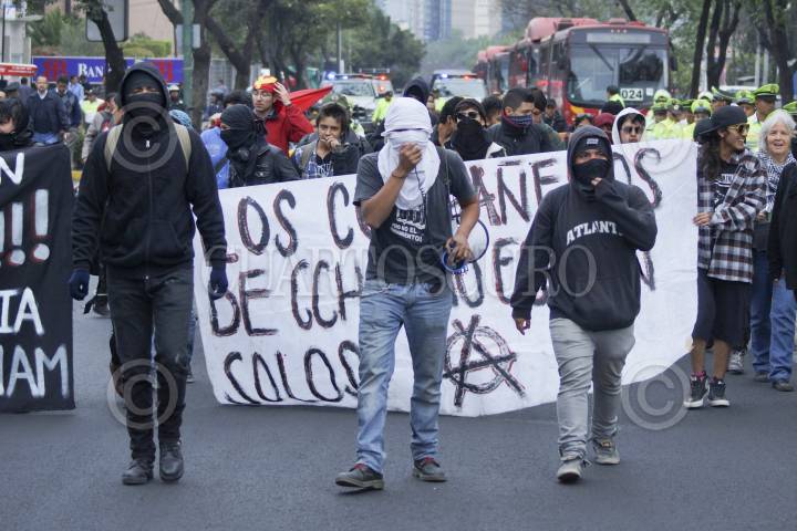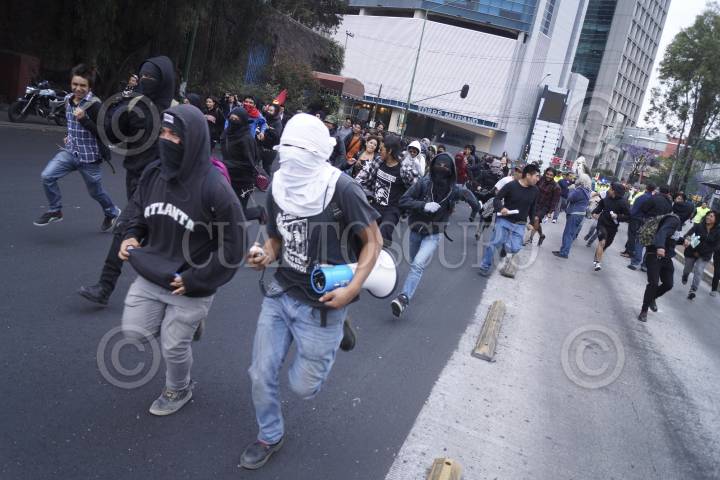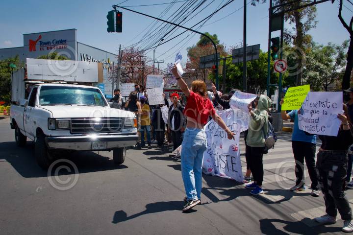 MÉXICO, D.F., 14MARZO2013.- Estudiantes de los diferentes planteles del Colegio de Ciencias y Humanidades (CCH), realizaron una marcha del monumento La Bombilla a las inmediaciones del edificio administrativo del CCH´s, en el cual bloquearon por alrededor de dos horas la avenida de los Insurgentes de sur a norte. La manifestación en demanda de la reinstalación de los estudiantes expulsados del plantel Naucalpan, fueron desalojados en los cuales hubo pequeños enfrentamientos con las fuerzas policiales. FOTO: ADOLFO VALTIERRA /CUARTOSCURO.COM
