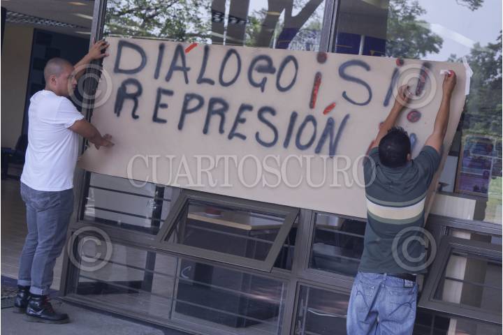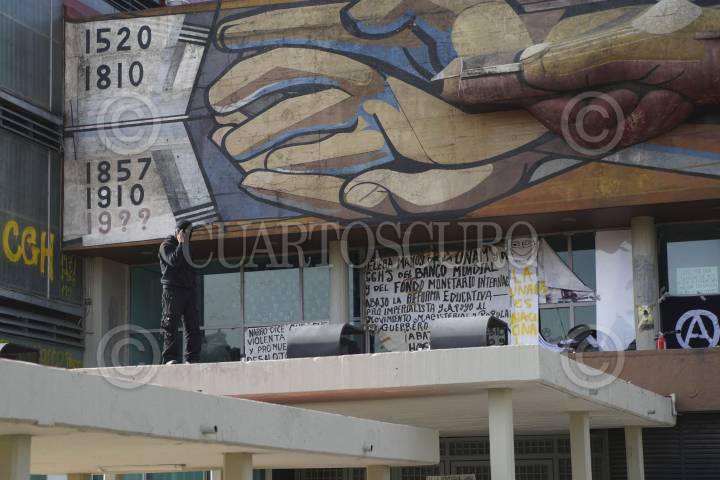 MÉXICO, D.F., 30ABRIL2013.- Estudiantes del CCH que mantienen tomadas las instalaciones de Rectoría en la Cuidad Universitaria informaron de una marcha que realizaran hacia la facultad de medicina aproximadamente a las 14:00 hrs del día de hoy. Cabe señalar que algunas de sus principales demandas son la reinstalacion de alumnos expulsados del colegio de humanidades del CCH, así como el retiro de las acusaciones imputadas hacia los mismos; esto como condición para retirar el campamento. FOTO; ALEJANDRO NEYRA /CUARTOSCURO.COM