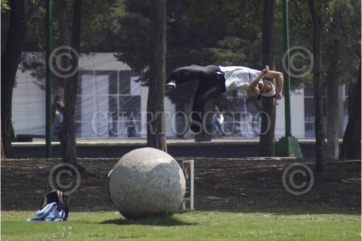 MÉXICO, D.F., 16MAYO2013.- Joven deportista realiza saltos en las islas de Ciudad Universitaria. FOTO: ADOLFO VALTIERRA /CUARTOSCURO.COM