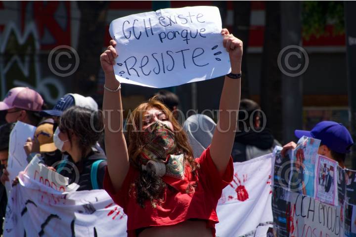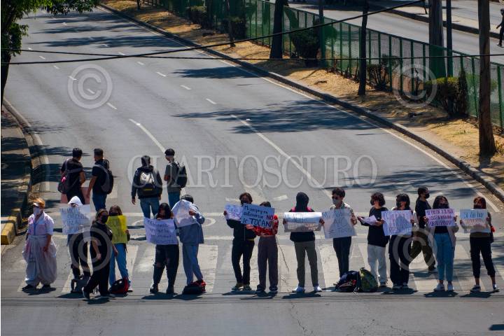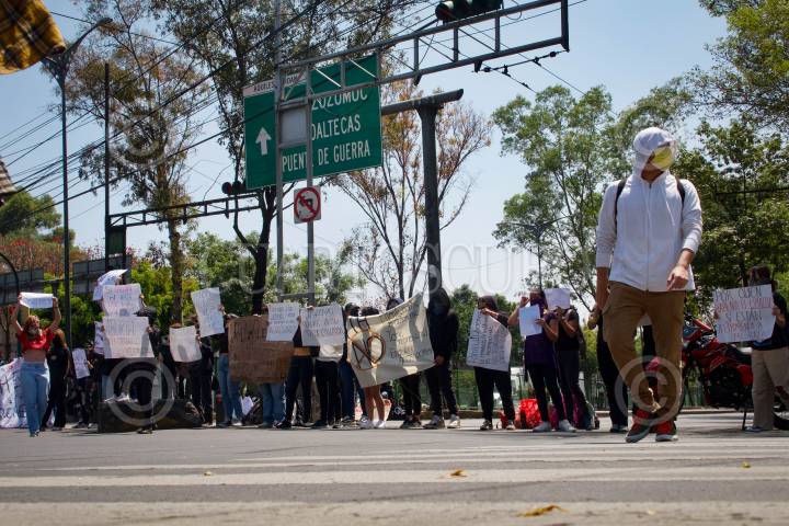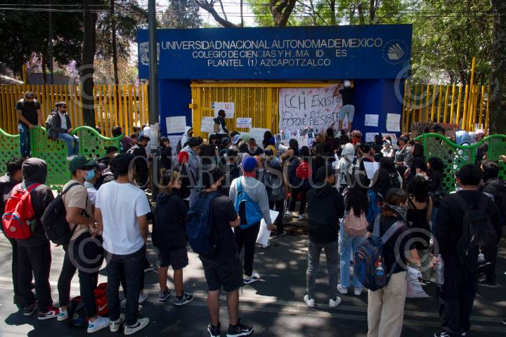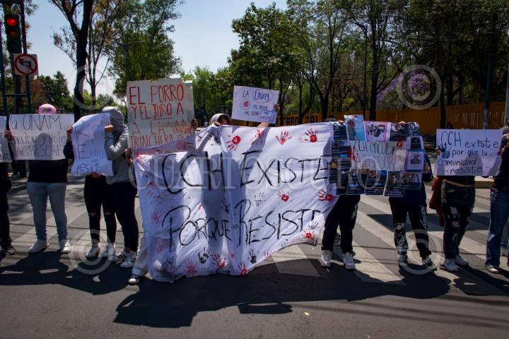 Alumnos del CCH Azcapotzalco durante manifestación por violencia contra las mujeres.